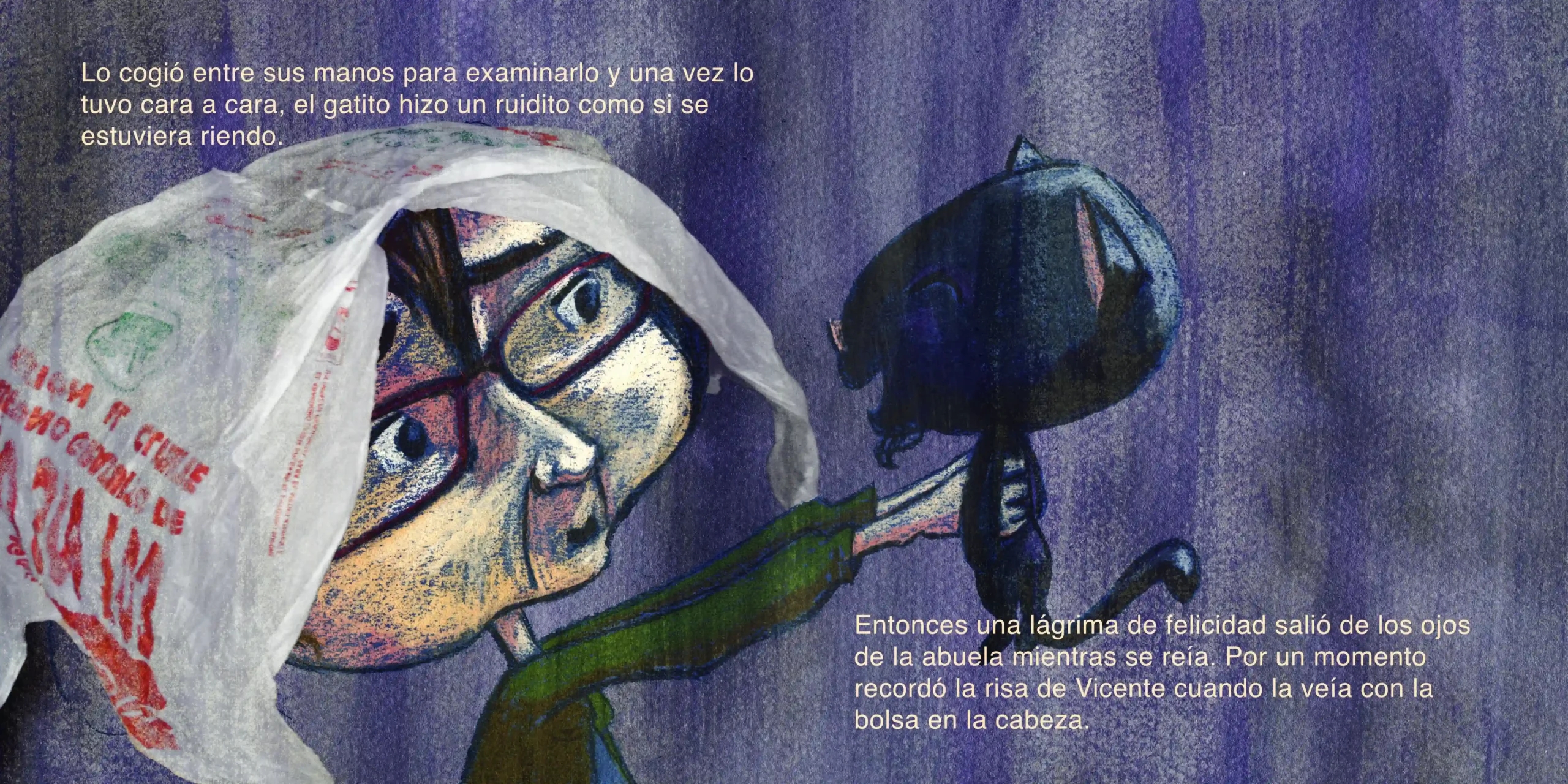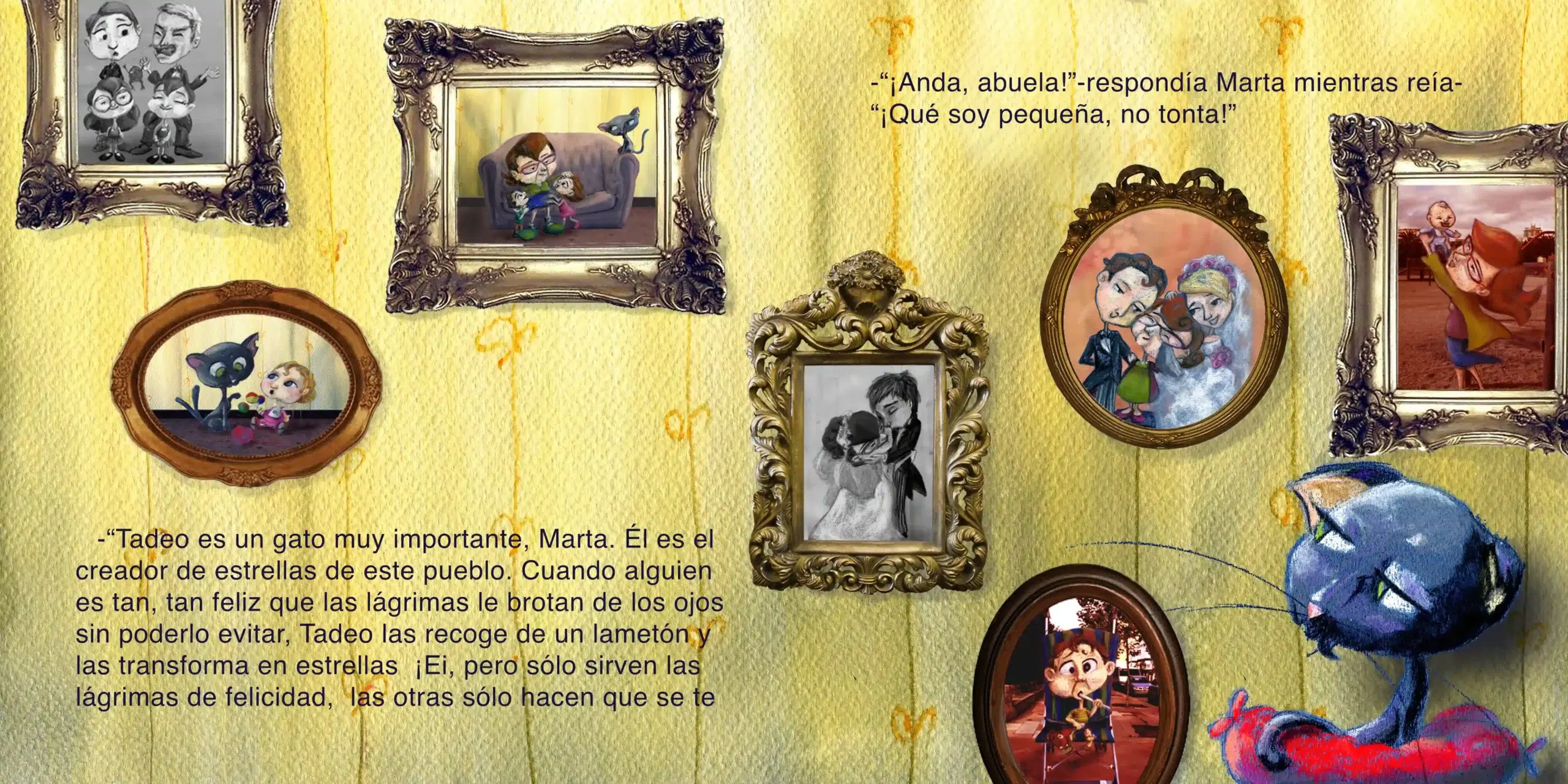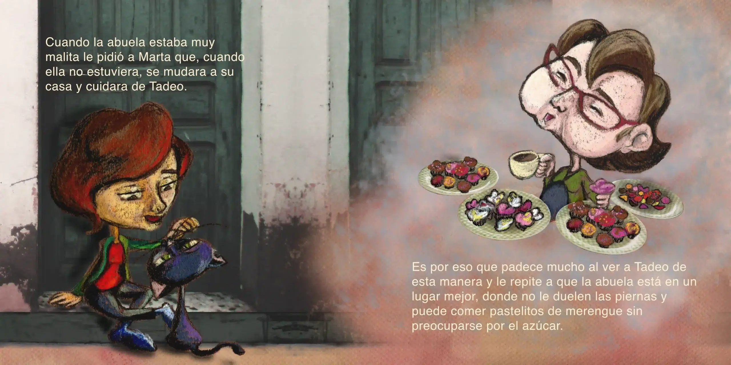 «Tadeo» was my first picture book; I made it while I was studying Fine Arts. It tells the story of a star cat who is sad about the loss of his owner and how his new owner encourages him to move on.
