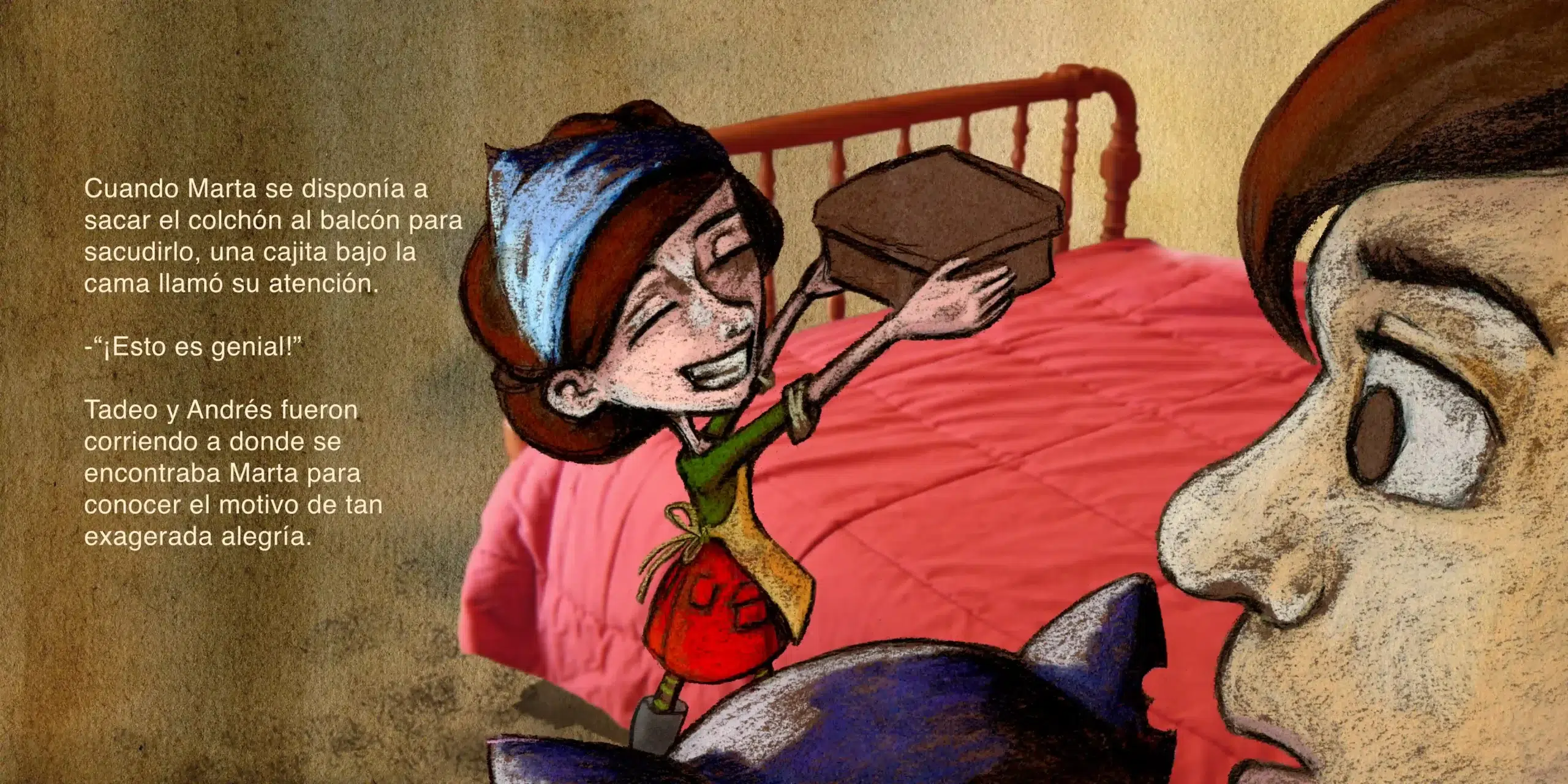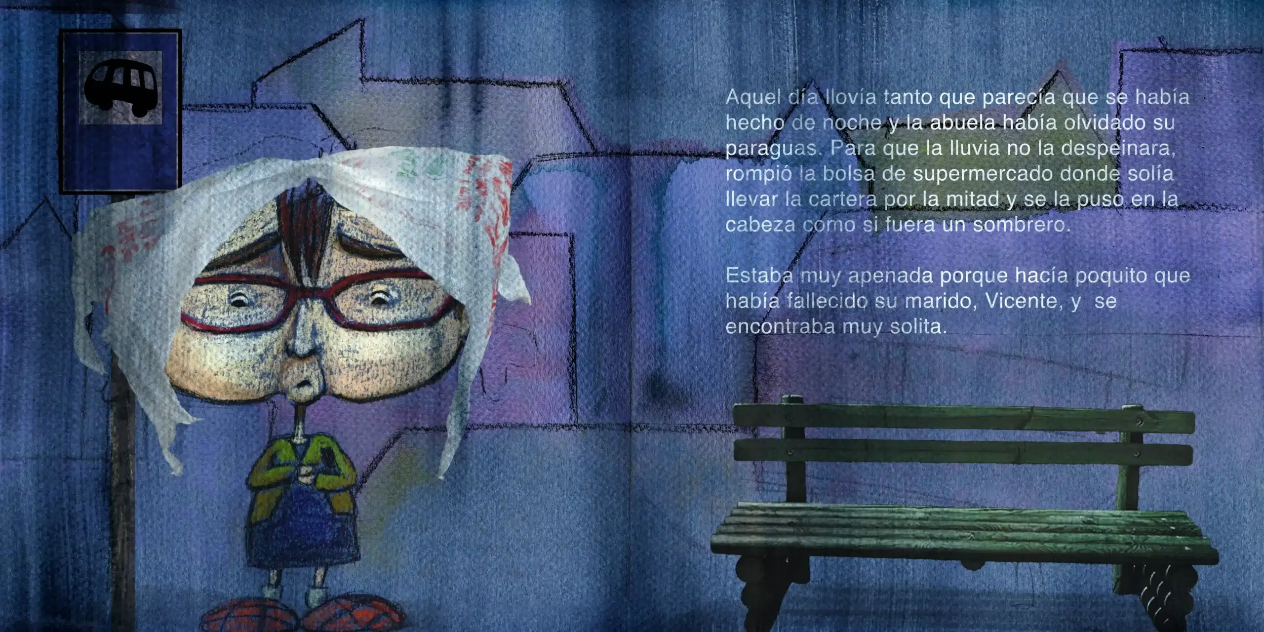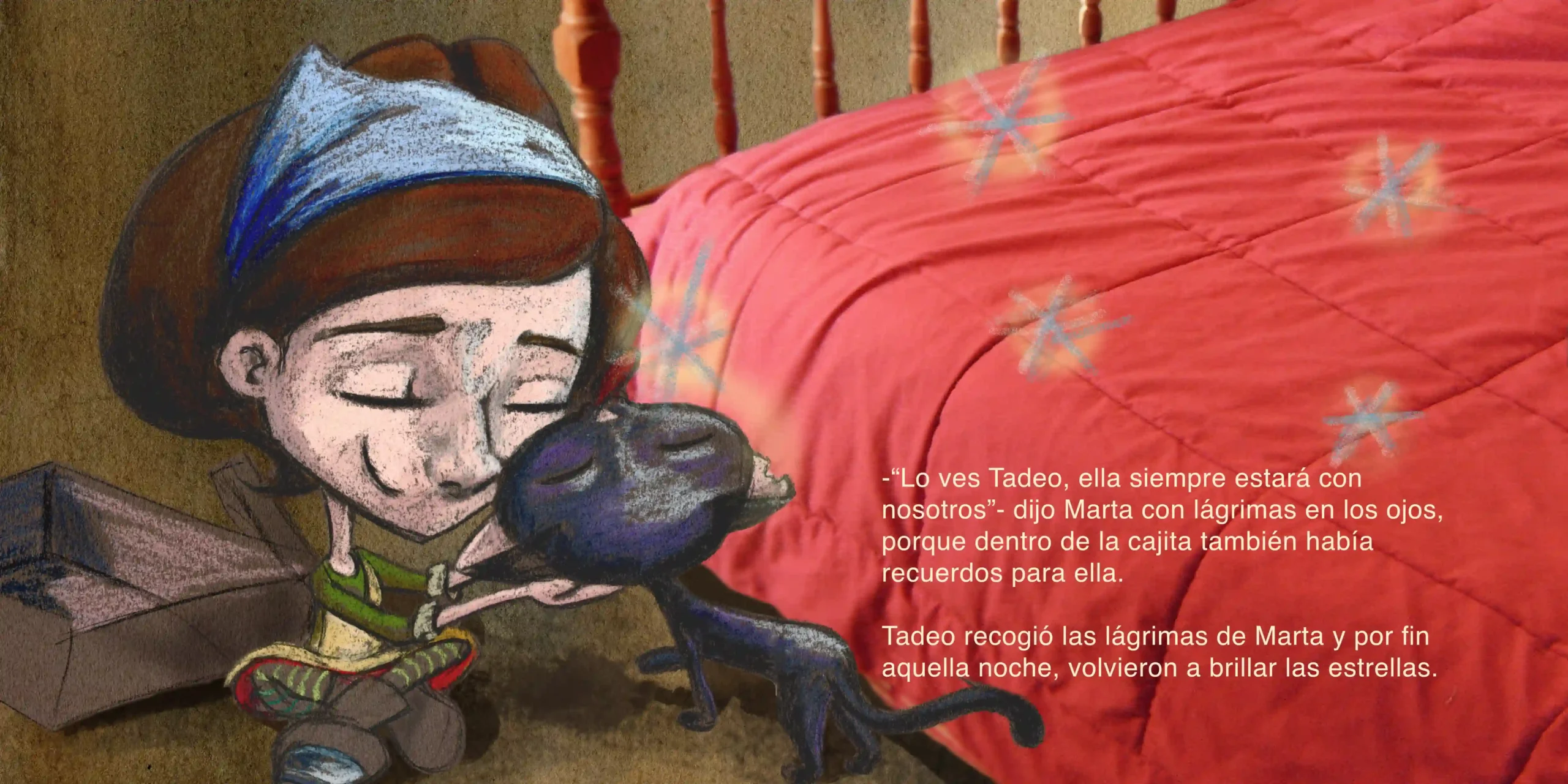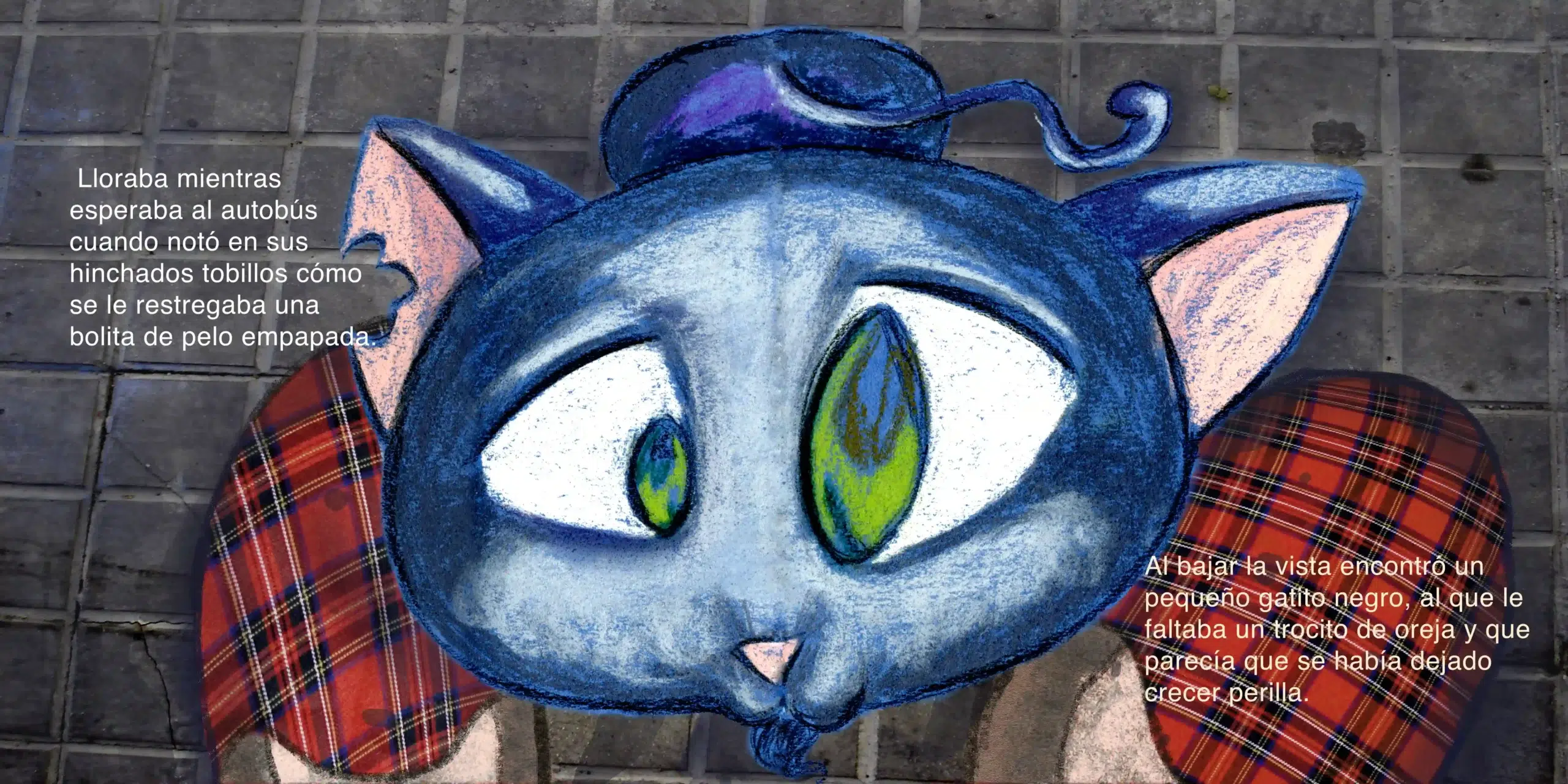 «Tadeo» was my first picture book; I made it while I was studying Fine Arts. It tells the story of a star cat who is sad about the loss of his owner and how his new owner encourages him to move on.